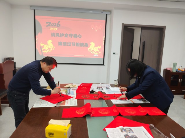 活动中,党员们结合岗位实际,现场创作并书写廉政对联,以笔墨传递廉意,以初心坚守底线。最后,全体党员郑重签订《2026年春节廉洁过节承诺书》,承诺严守廉洁纪律,筑牢思想防线。